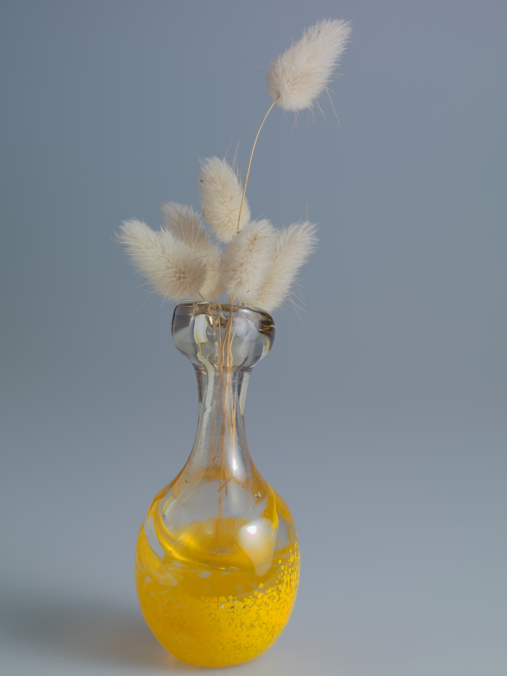Le Lagure ovale, appelé aussi Gros-minet, Chaton ou Queue-de-lièvre. Vase de la verrerie Ce qui est en verre, Moissac, Tarn et Garonne.